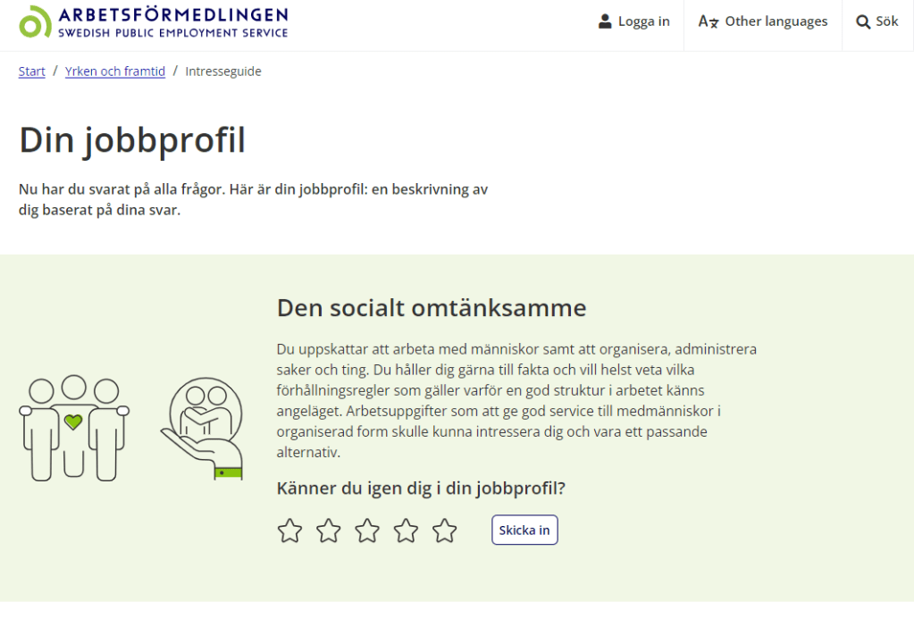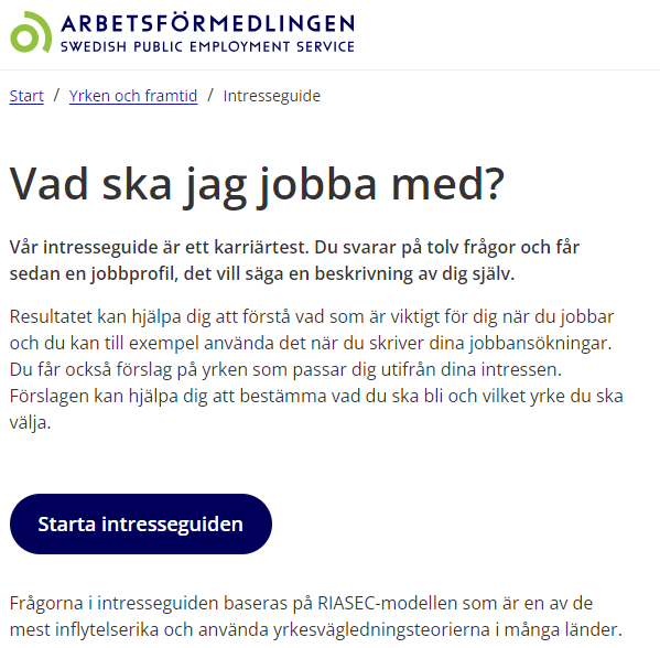 AF har satsat väldigt mycket pengar på tjänsterna online. Tips är att gå igenom och svara på intresseguiden MEN bara för skojs skull! Se det som en kul grej till att börja med 🙂