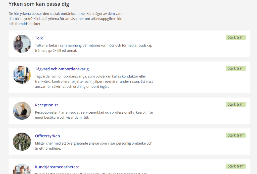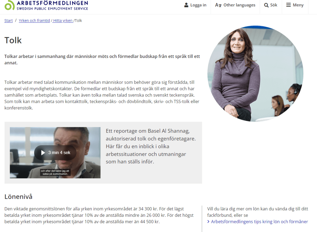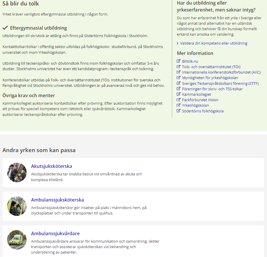 Här har jag klickat på yrket tolk